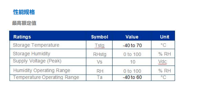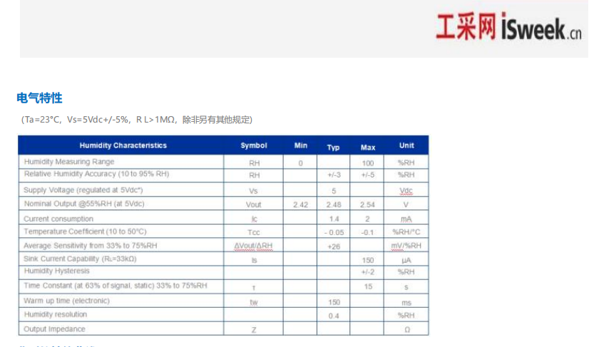 4、 5Vdc 电源下 0 至 100%RH 的典型 1 至 3.6 V直流输出